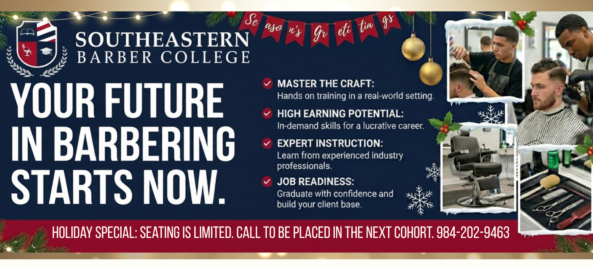 We provide adult learners with a flexible, self-paced barber/stylist program. Our primary goal is to equip students with the knowledge and skills necessary to successfully pass the North Carolina State Board of Barbering exams.